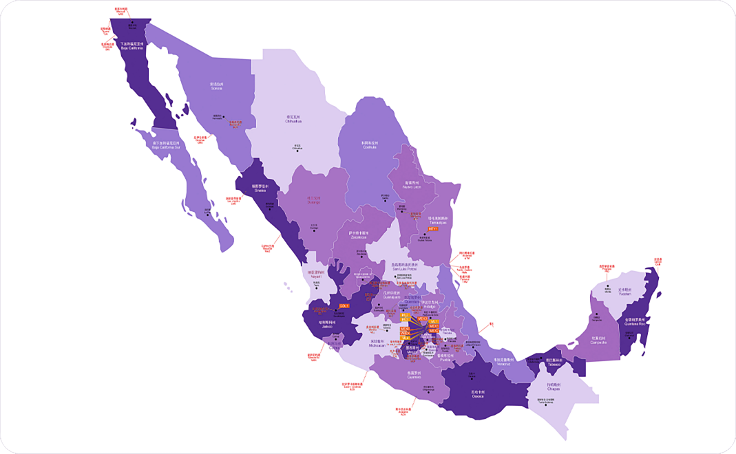 直航直達墨西哥拉薩羅 卡德納斯或曼薩尼約港,直達墨城海外倉,覆蓋墨城美客多、亞馬遜等主要電商平臺和全墨各地。美西靠港,經轉美國監管倉,直達墨城實現全程高效限時運轉,覆蓋墨城全域。